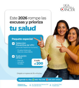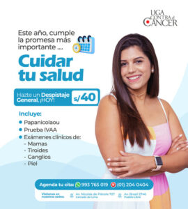 Somos la primera institución, en el Perú, en realizar acciones de prevención y detección temprana de cáncer. Desde nuestra fundación, en el año 1950, hemos contribuido a disminuir la alta incidencia de la enfermedad, a través de acciones de prevención como campaña informativas, educativas y despistajes preventivos que permiten lograr una cultura preventiva y hábitos de vida saludables.